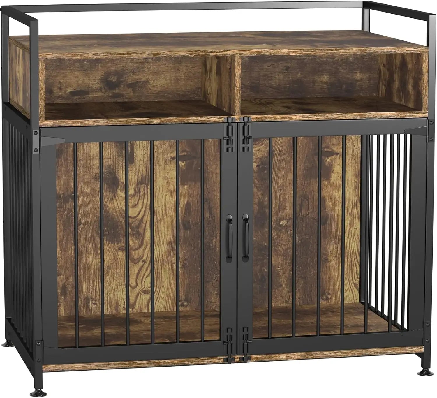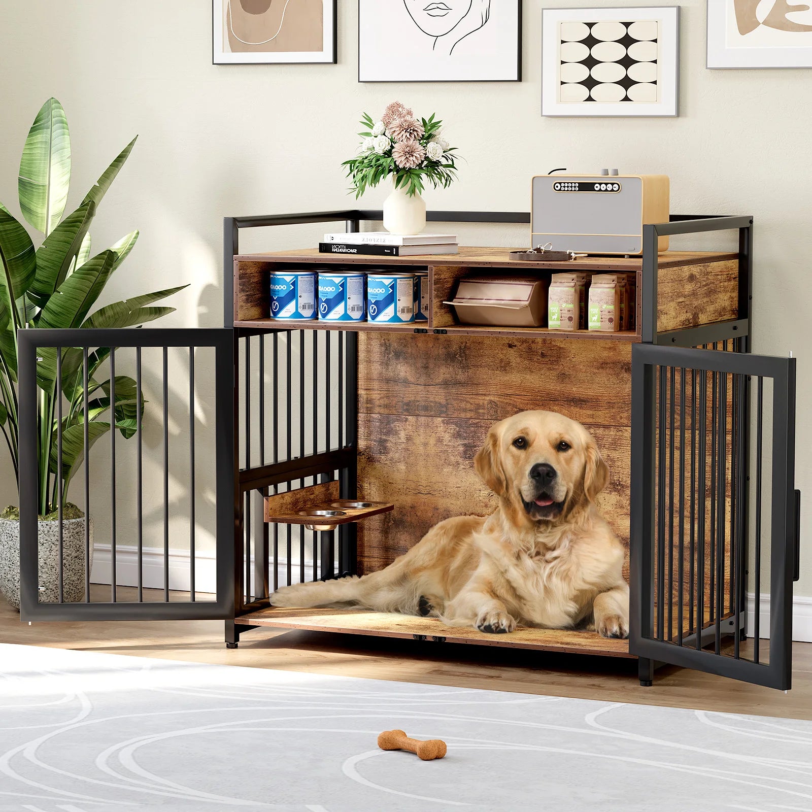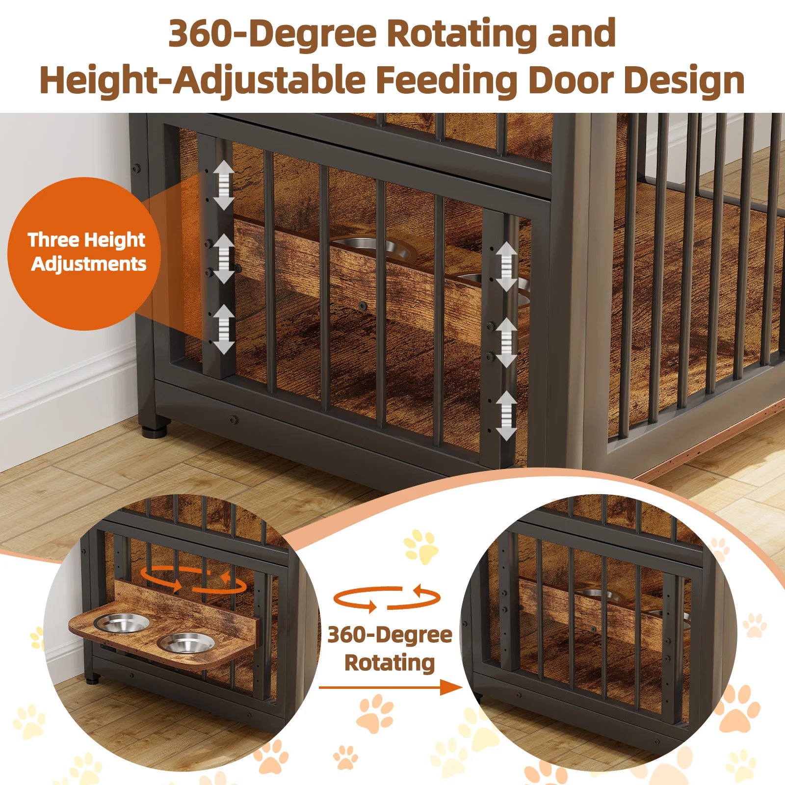 41/48 Inch Wooden Dog Crate Furniture, with Storage Drawers, Adjustable Raised Feeder, Indoor Pet House for Large & Medium Dogs