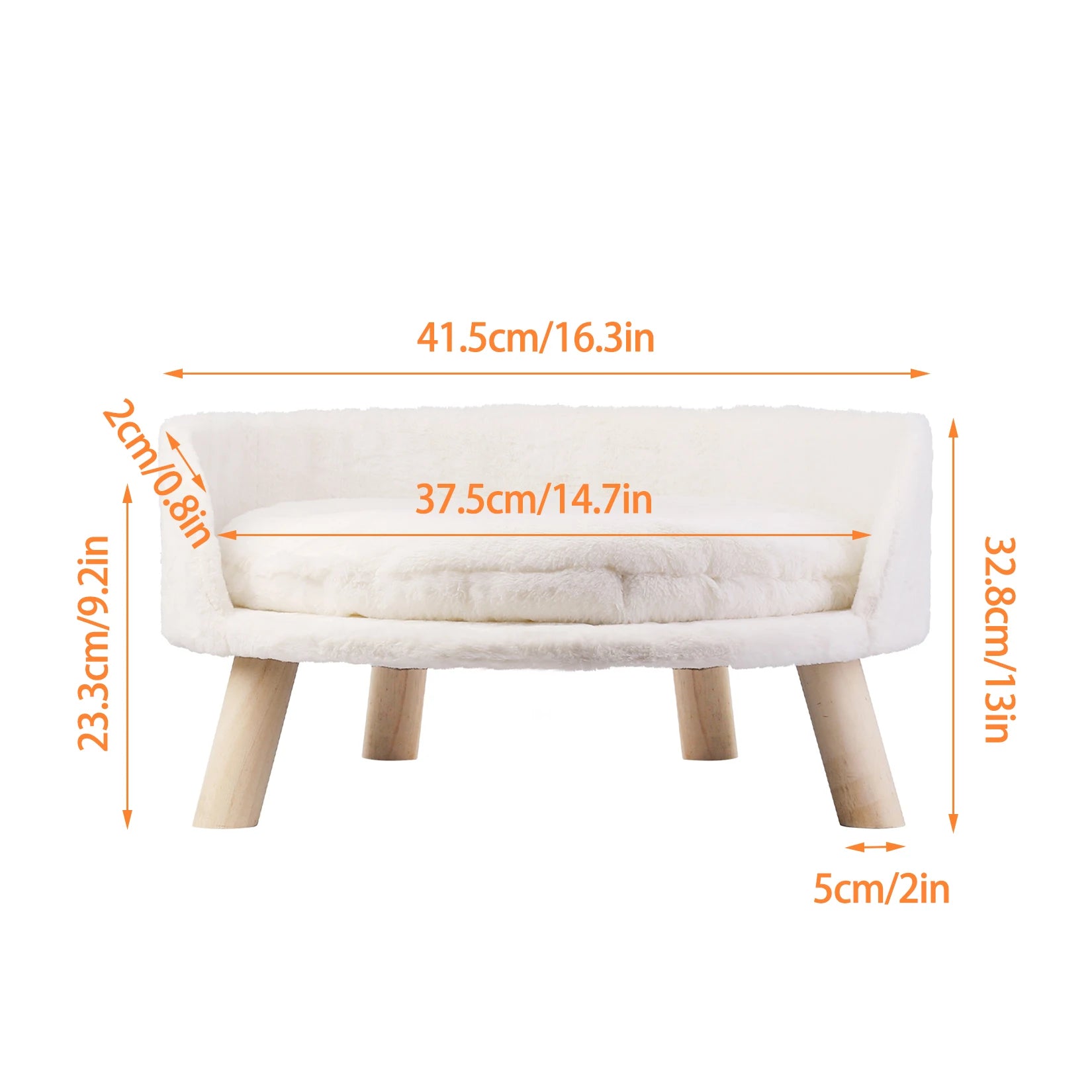 Material: Composite Board, White Plush Fabric, Solid Wood Feet