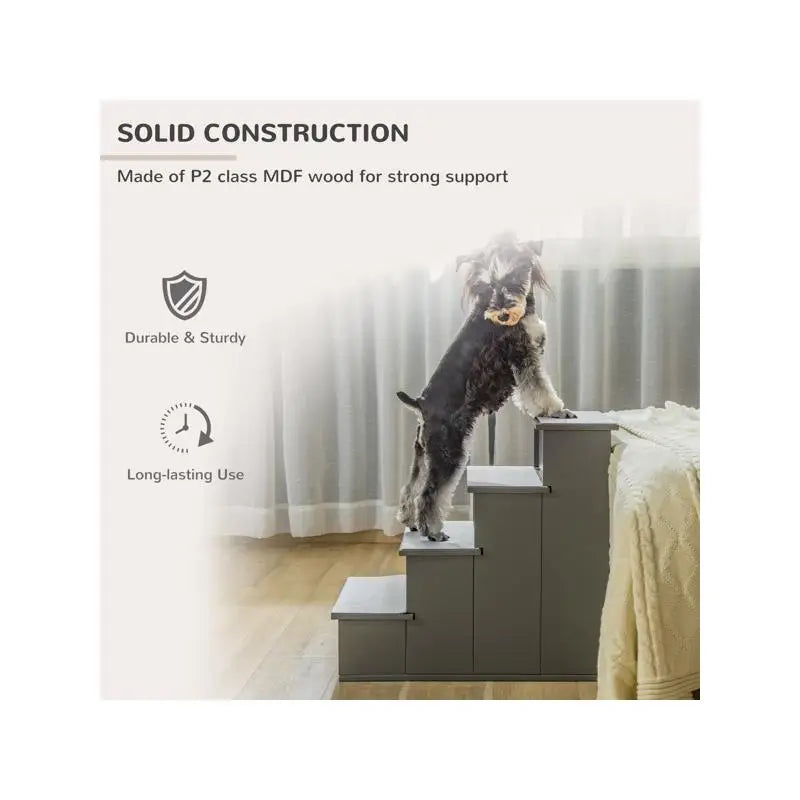 - Four-step pet stairs with neutral color tones go great with your existing furniture