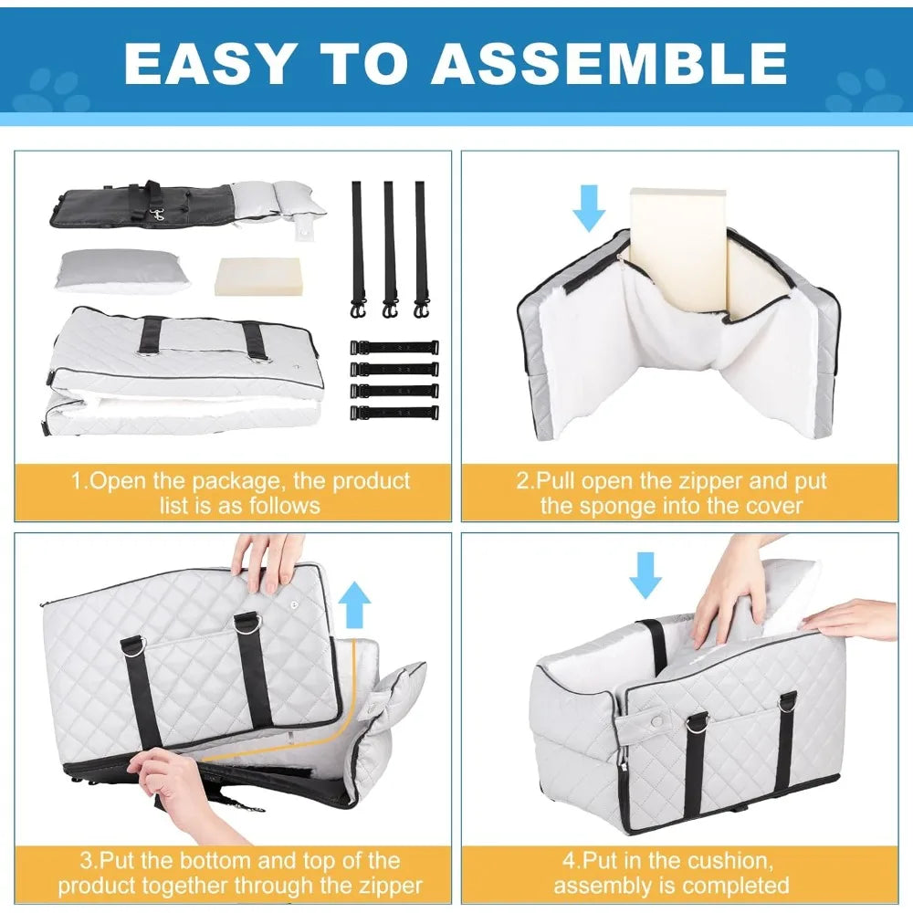 *Great as a little dog/cat travel bed and small dog/cat car carrier. It attaches easily to any center console, including double door console and single door console. The pet travel car seat fits small dogs/cats under 12lbs. It can be used in the front seat, back seat, indoors, and outdoors.