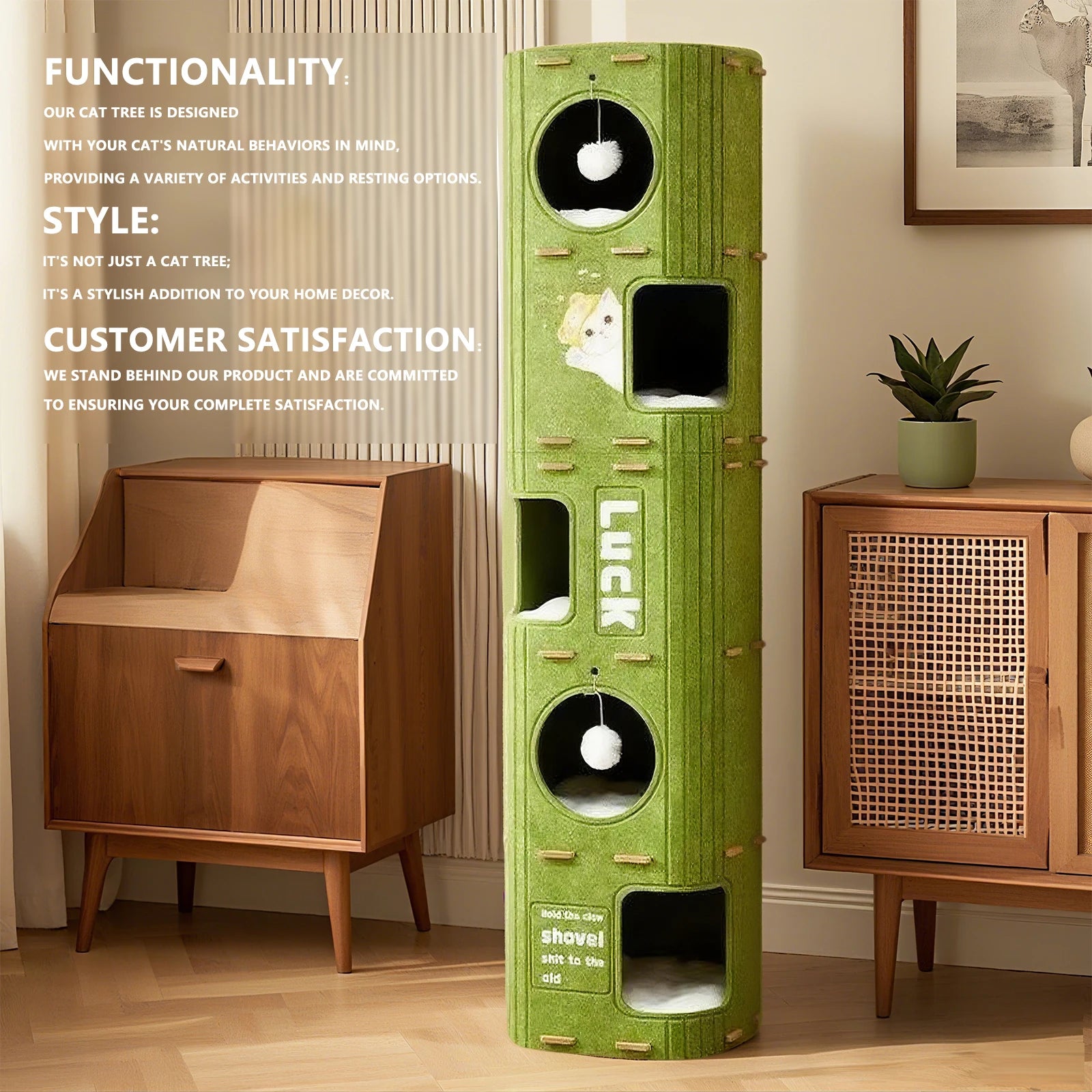 ** 5. Expertly crafted for households with multiple curious kitties, this luxurious activity tower combines robust play structures with plush relaxation zones – ensuring every claw, nap, and adventure is perfectly satisfied.
